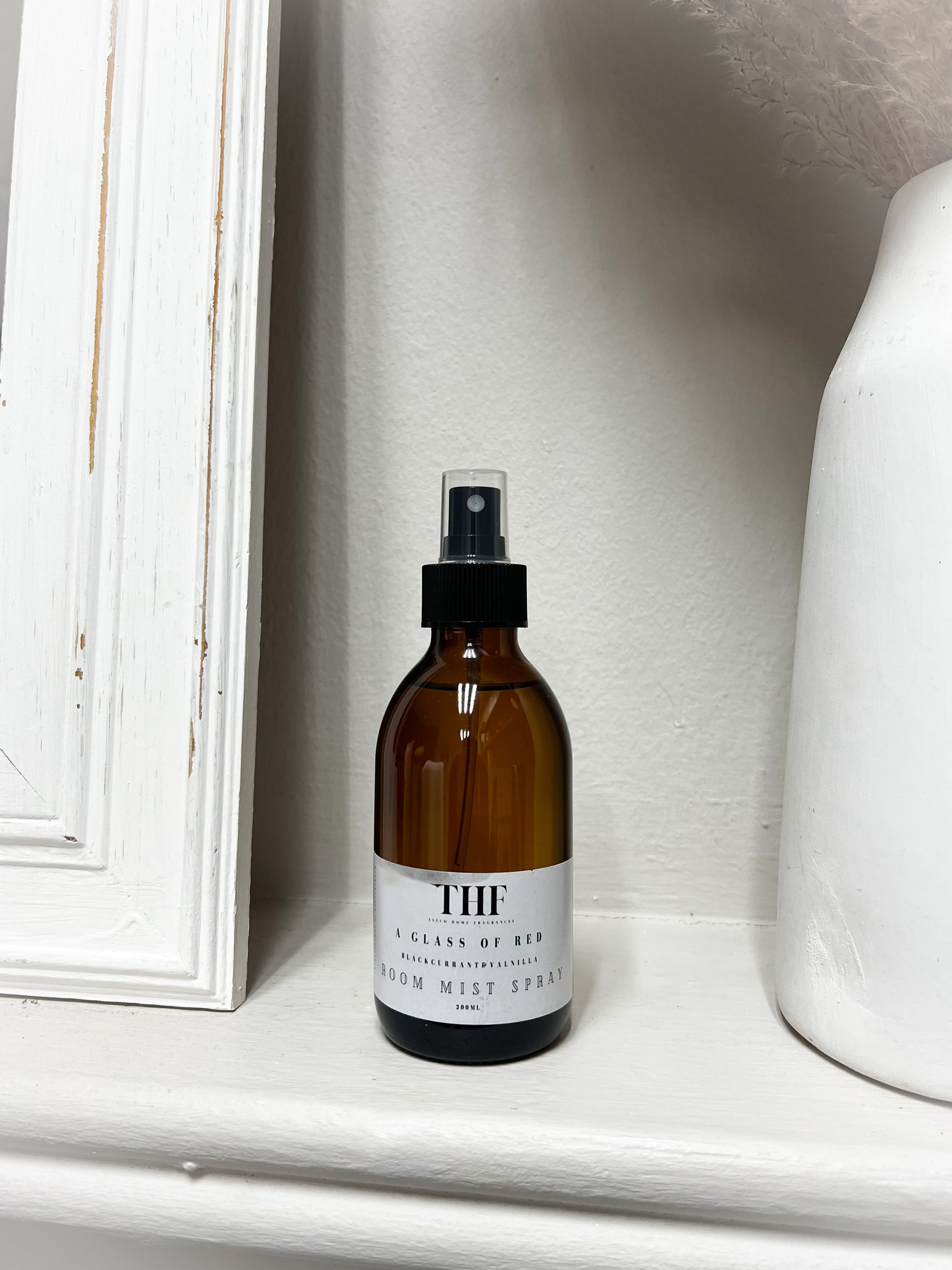 A glass of red room mist